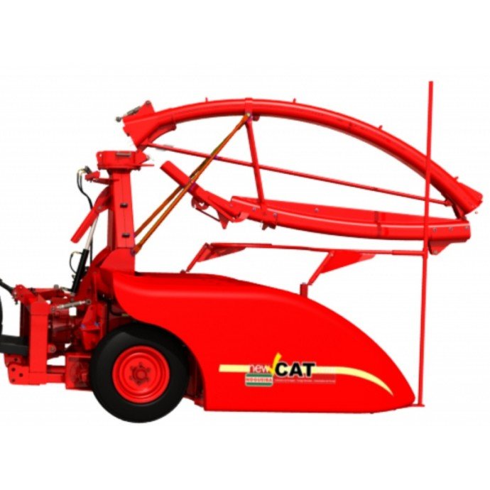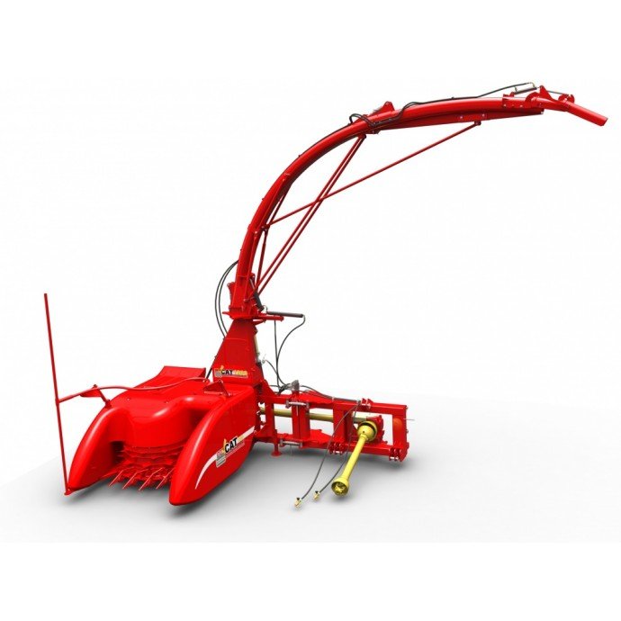 A colhedora em área total New Cat 1200 possui 1,2 mt de abertura e colhe as mais variadas culturas como por exemplo: milho, cana, sorgo girassol e demais forrageiras com altura mínima de 1,00 mt, em qualquer posição sem seguir linha de plantio e sem a necessidade de troca de plataforma de recolhimento. Com um braço articulável é ideal para colheita em ré, para abertura de carreadores e transporte.